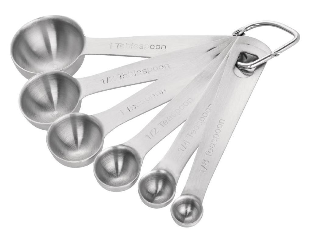 The Vogue measuring spoons allowing you to follow recipes with great accuracy. This set of 6 high quality measuring spoons includes 1/8, ¼, ½, 1 teaspoon, ½ and 1 tablespoon. Crafted from stainless steel making these spoons are incredi... Read more »
