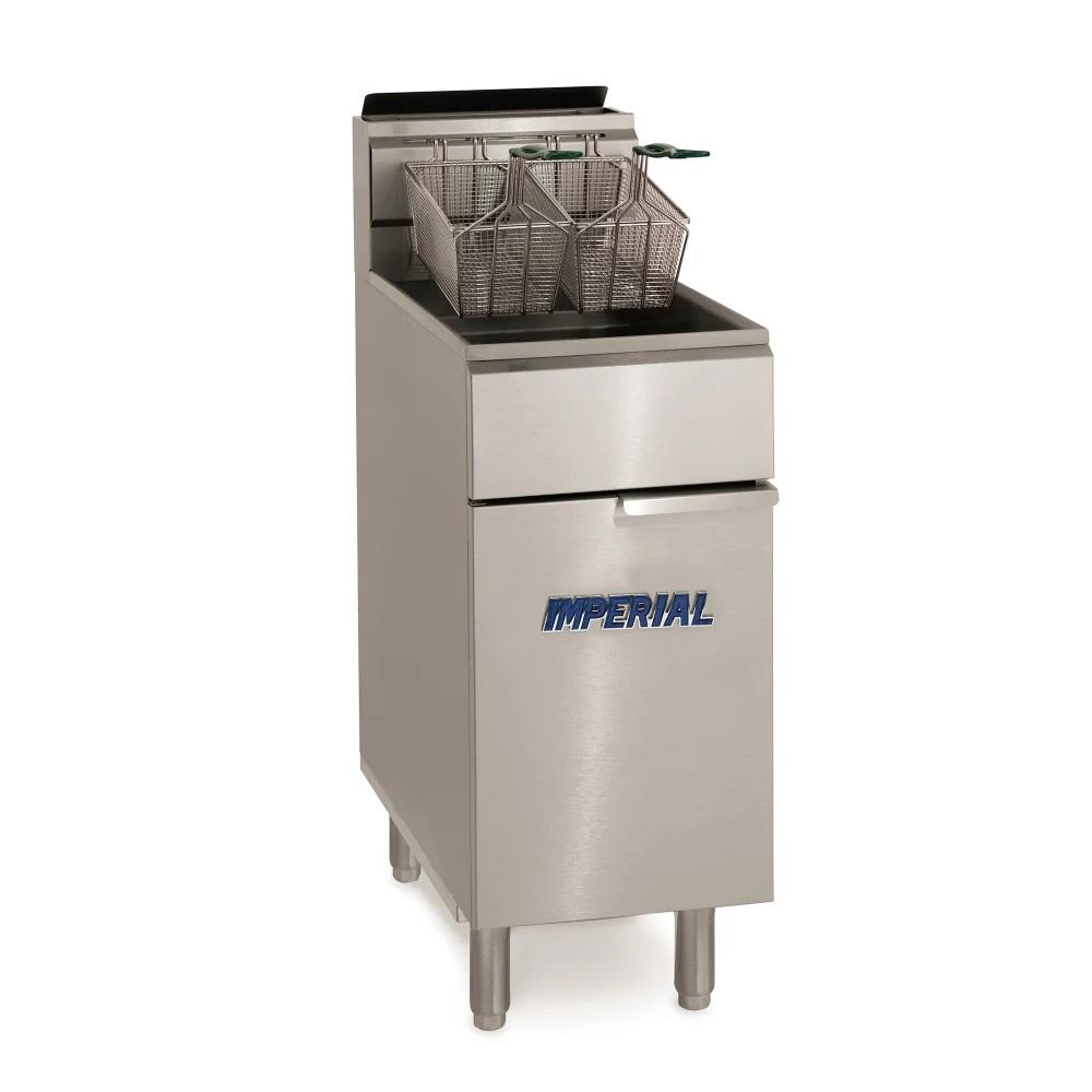 Imperial IFS-50-OP 27 Litre, open pot, single tank twin basket open pot gas fryer• Fully welded and polished exterior seams.• Stainless Steel open frypot with 27 litre oil capacity.• Large 'cool zone' helps capture food particles, prolong oil life & ... Read more »