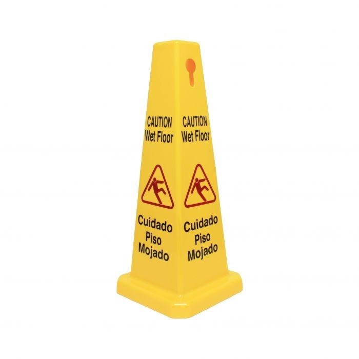This Thunder Group yellow wet floor cone allows you to clearly convey to customers when the floor is wet. The cone is has the warning written on each side and also has a cautionary message written in both English and Spanish - plus the cones can be s... Read more »
